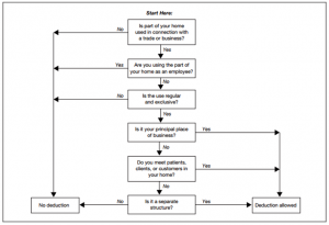 Here’s perhaps the most useful diagram Uncle Sam offers (from Publication 587) to help you as a taxpayer decide whether you can even deduct business use of your home expenses. (But, do not rely on this chart if you use your home for the storage of inventory or product samples, or to operate a daycare facility — those functions have their own sets of rules!):